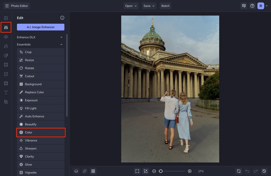 The first thing you want to do is adjust the overall saturation and color of your photo. Select the Edit tab in the left-hand menu.