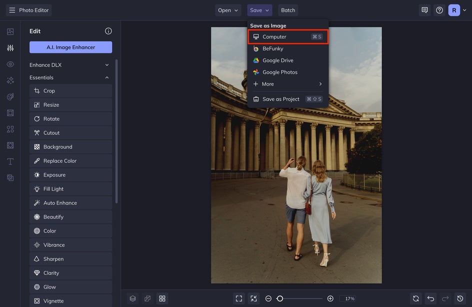 When you are finished making edits, head up to the Save tab at the top of your screen and save your image to your Computer.