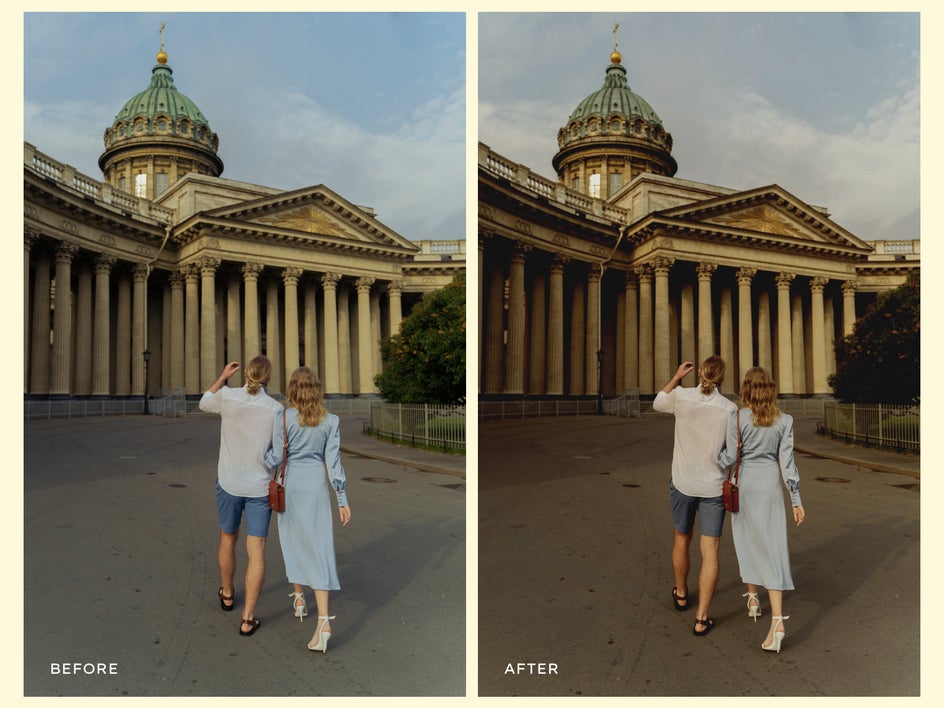 The edit works because the blues have been softened, the green has been edited to be more of a yellowed olive and the water looks more brown than blue. This example proves that even if you begin with a cooler-toned image, the photo can still fall into the warm-toned trend with a little editing magic.