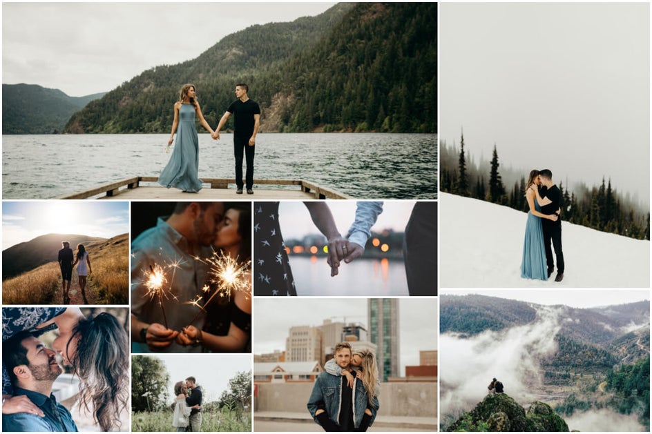 Grab your favorite drink and your new fiancé and start talking about what you want your shoot! This should be a super fun time to get all your ideas out. Bring a paper and pen and jot down all the ideas you love, or start a Pinterest board for them. Using social media is a great way to find ideas for your shoot. Pinterest, Instagram, and photography blogs are great places to start. Simply search keywords like "engagement photo ideas," "engagement photoshoot poses," or specific themes that resonate with you. You can create boards or save posts that catch your eye.