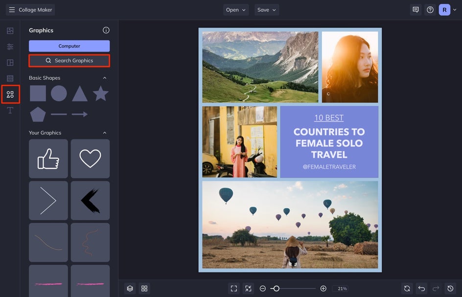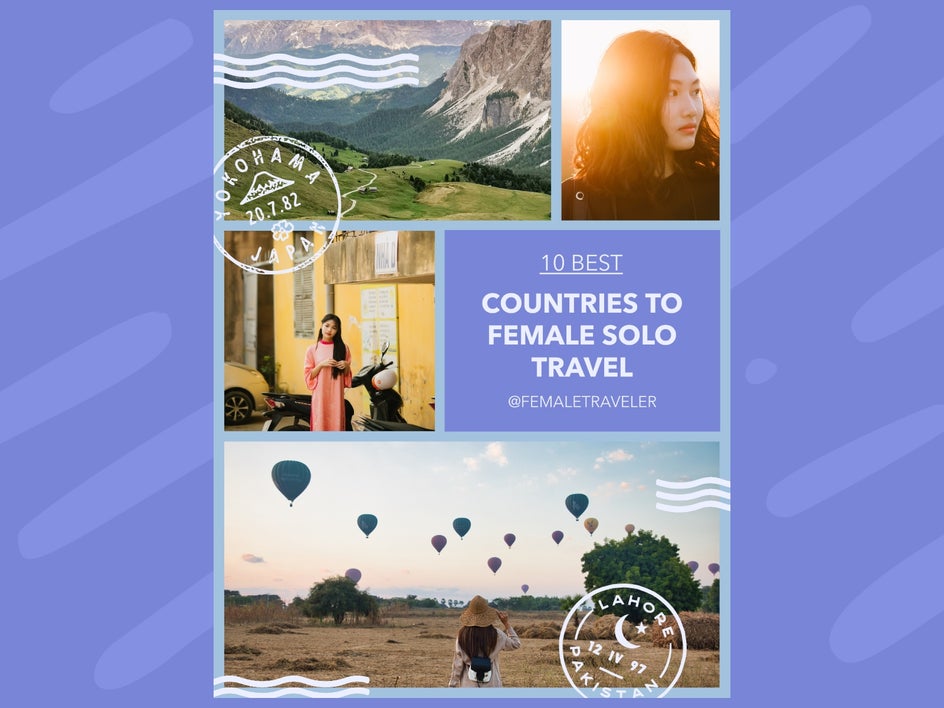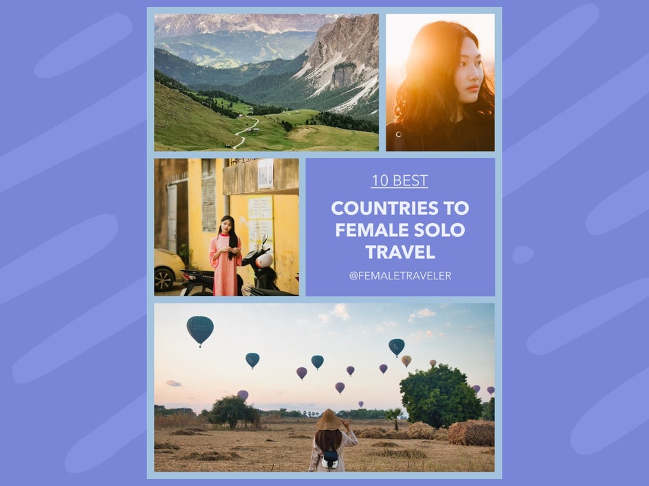 First, create your collage. You can easily upload and add photos to your collage and edit them directly in the Photo Editor without ever leaving the Collage Maker. For our project, we're creating an informative Pinterest collage listicle for female solo travelers.