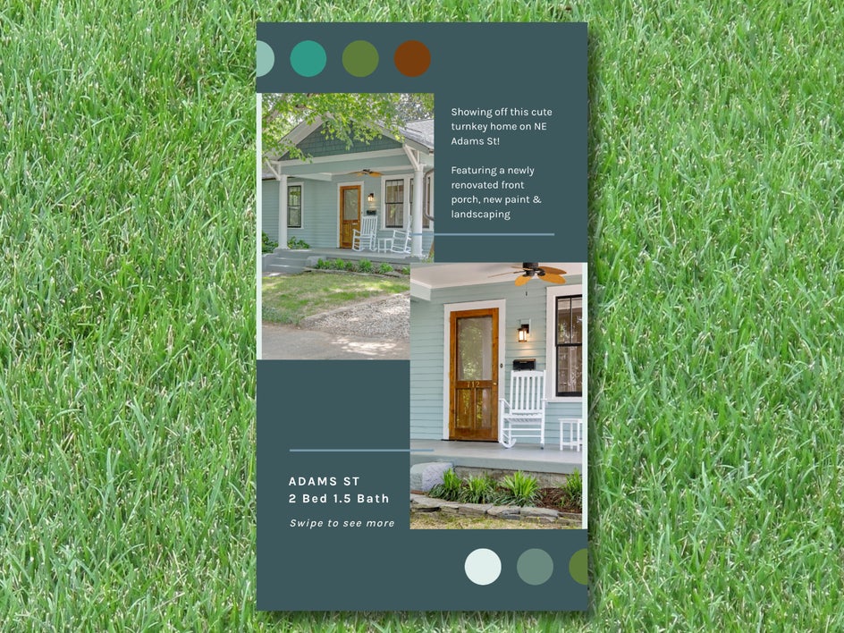 Want to guide potential buyers through a property visually, even before they book a showing? Use the AI Image Enhancer to prep your room-by-room photos, then organize them into a scrolling story format with the Graphic Designer’s Instagram Story templates.