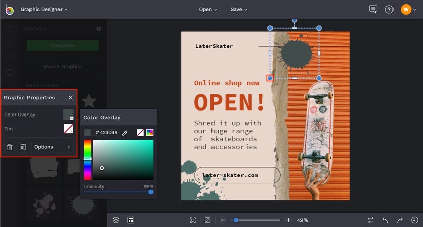 Drag it anywhere you'd like on your template, then feel free to use the Graphic Properties panel to customize it in a variety of ways.