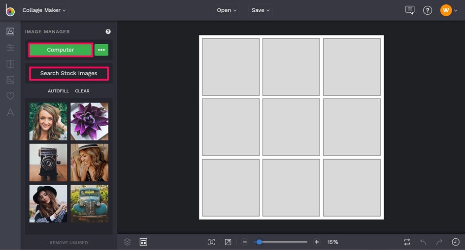 If you’d prefer to use stock photos in your fall collage, then you’re in luck. From the Image Manager, you can click Search Stock Images to access the millions of free-to-use, high-quality stock photos BeFunky offers.