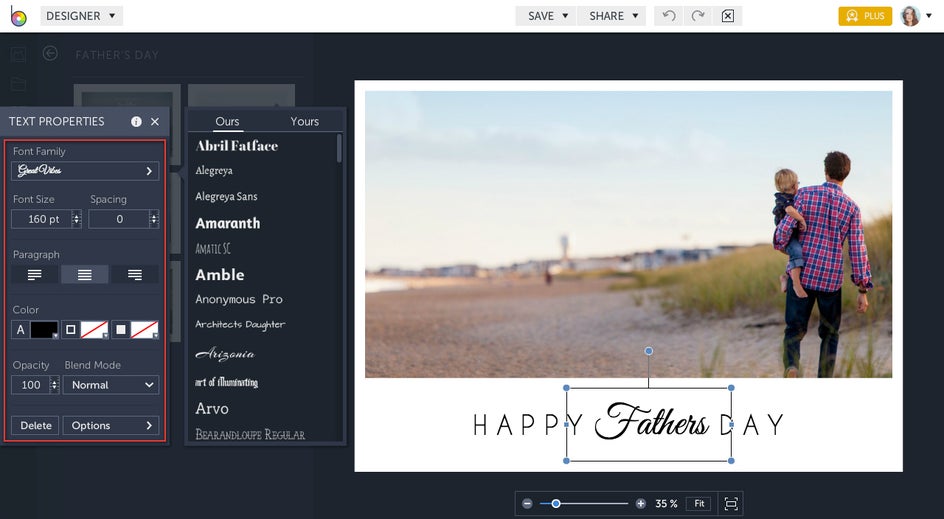 First things first, what does your father like? Is he a coffee drinker? Then you could make an image or a quote to put onto a mug. Does he like to drink? Create coasters for him with each of your family members' faces on them. Is he sentimental and known for his writing? Create a DIY card. No matter what you decide the direction is, creating a DIY Father’s Day gift is simple with BeFunky’s Designer.