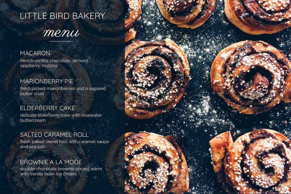 When you think of a bakery, two words often come to mind: warm and inviting. Therefore, when creating a menu for a bakery, the text should communicate these feelings to the viewer.