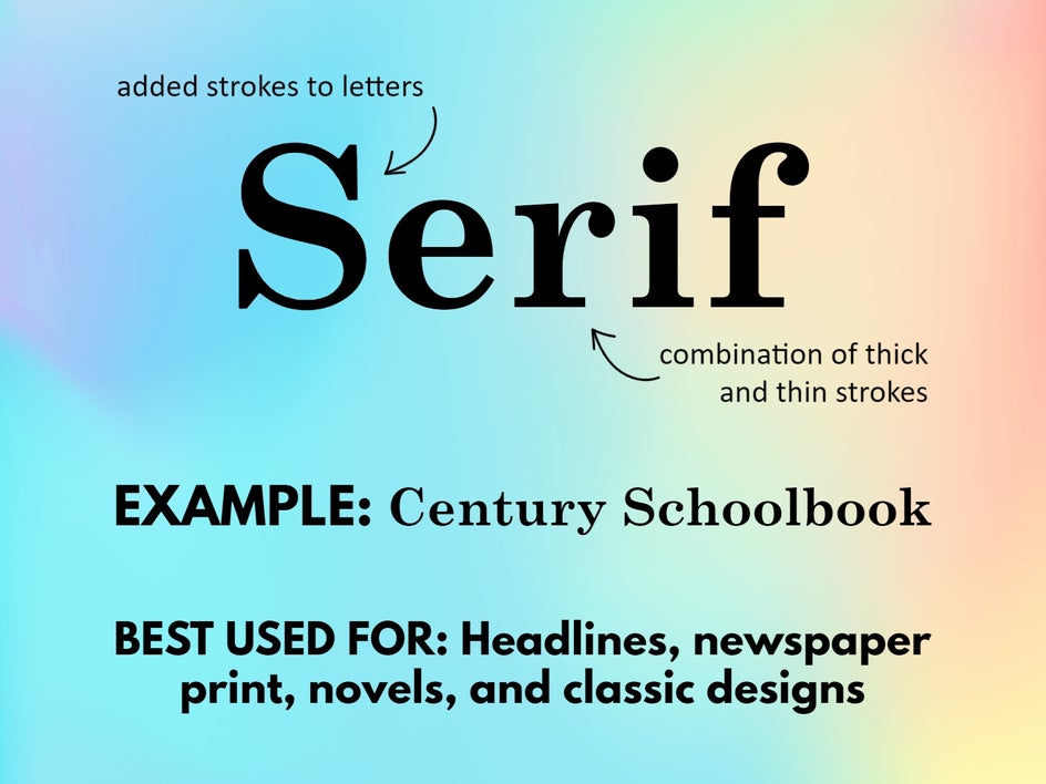 Without further ado, here’s what you need to know about serif, sans serif, decorative, and script fonts.