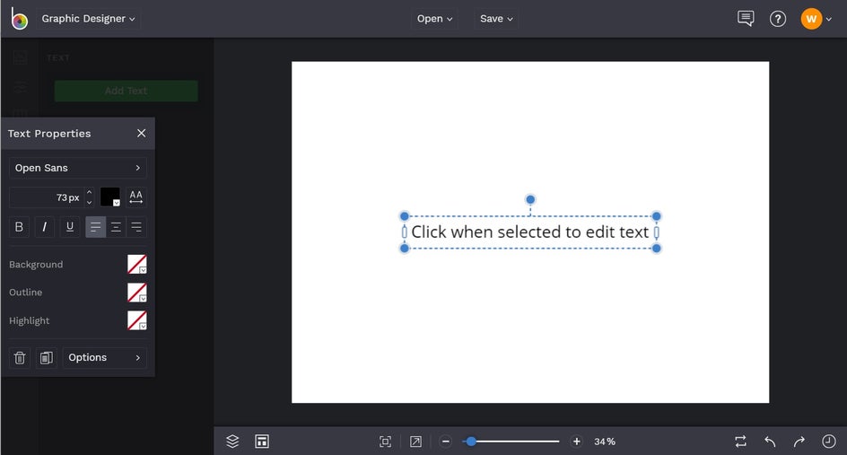 You can also adjust the text using the Text Properties panel which appears when a text box is selected. From here, you can change the font, text size, text color, spacing, alignment, and more.