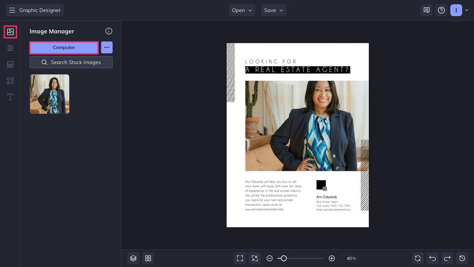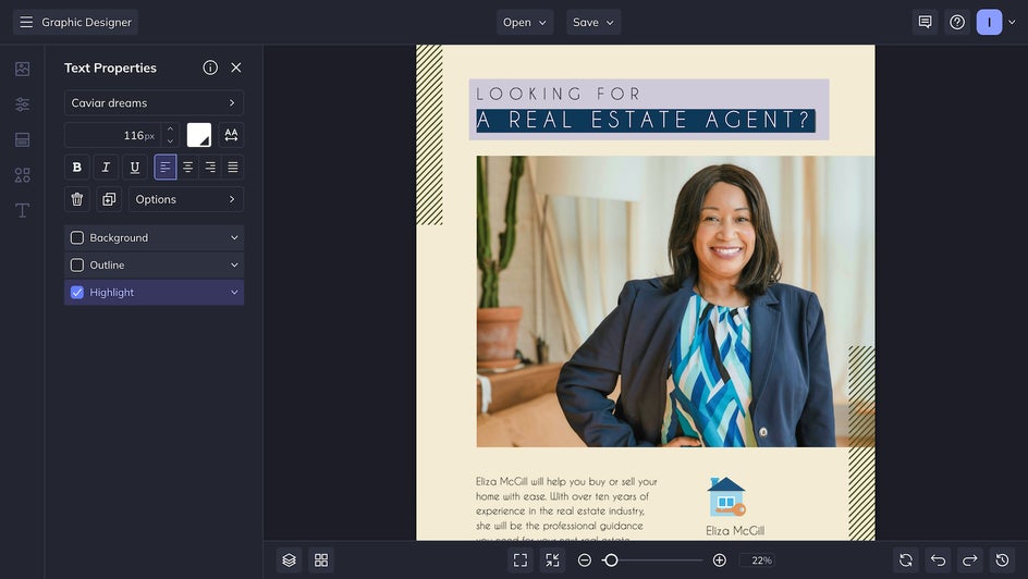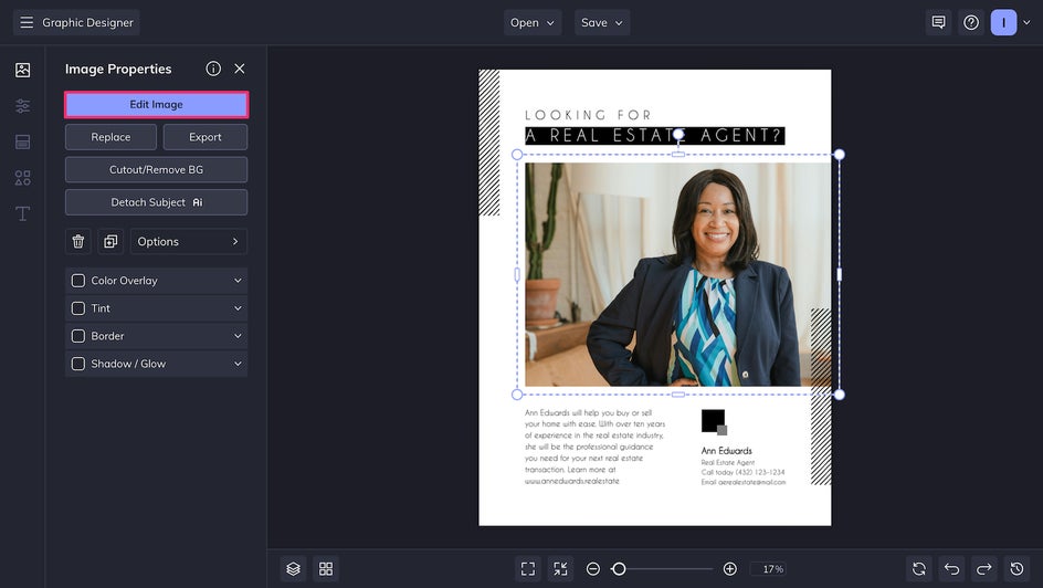 In this tutorial, we’ll walk through how to enhance a portrait for a real estate flyer, in an industry where it’s particularly necessary to create a trustworthy, professional image. To begin, head on over to the Graphic Designer.