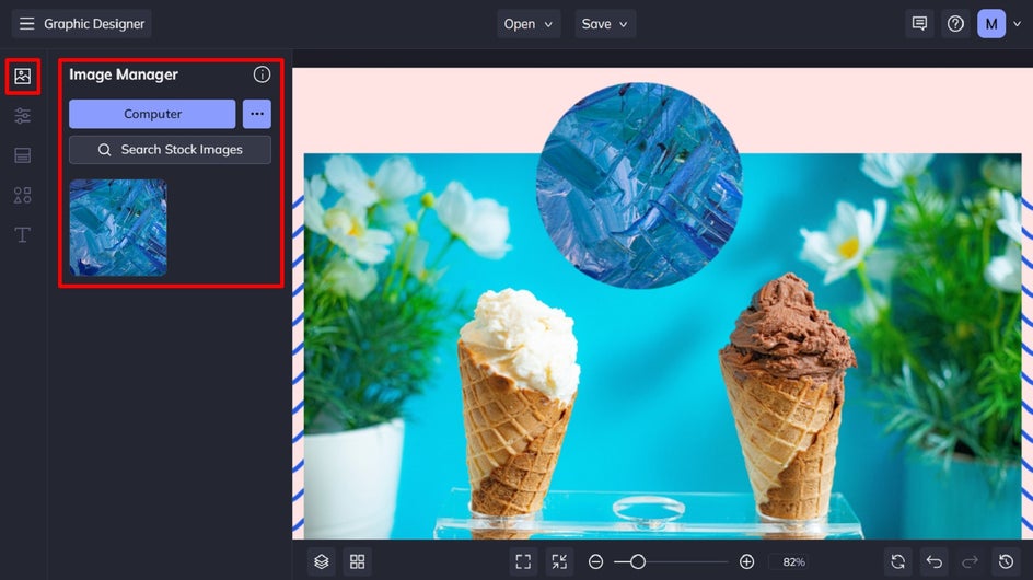 Clipping masks allow you to fill your shape with an image or texture, instead of a solid color. To create this look, all you have to do is upload your desired photo or texture into the Image Manager (either from our wide range of stock images or your own files), then drag and drop your chosen image onto the shape on your canvas. It’s that simple!