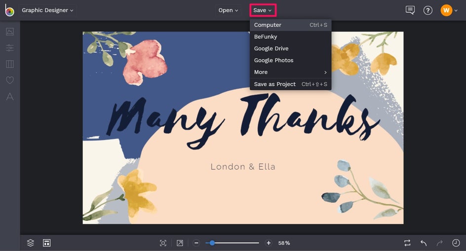 Once you’ve achieved graphic perfection, simply Save your design by clicking Save at the top of the screen, then select your desired Save location.