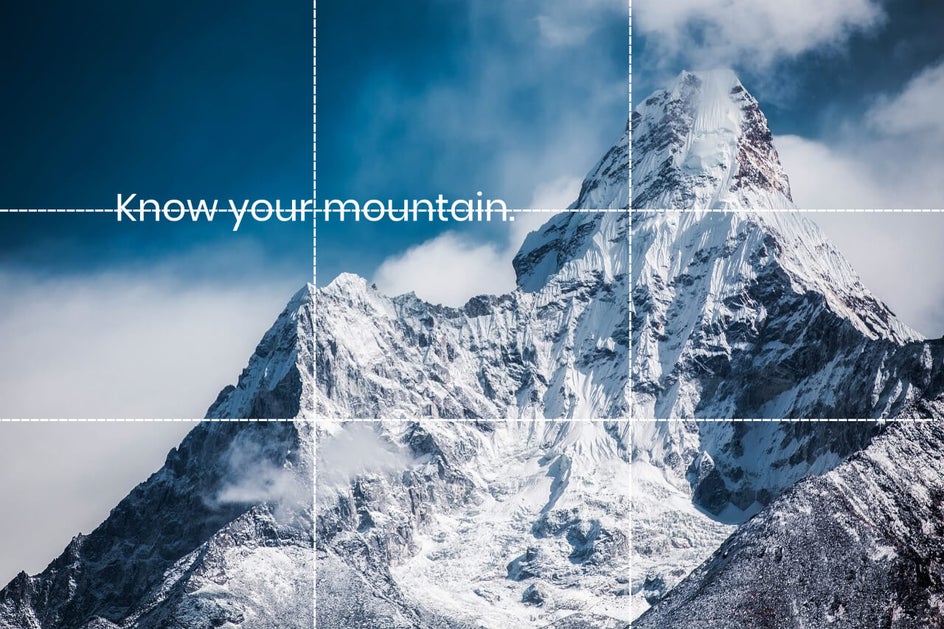 Following the Rule of Thirds, the most important design elements are placed at a guide intersection (that goes for the subjects in your imagery, too!), while the supporting design elements are placed within a few of the sections. As with all great designs though, rules are meant to be broken. So feel free to play with different compositions that feel right to you!