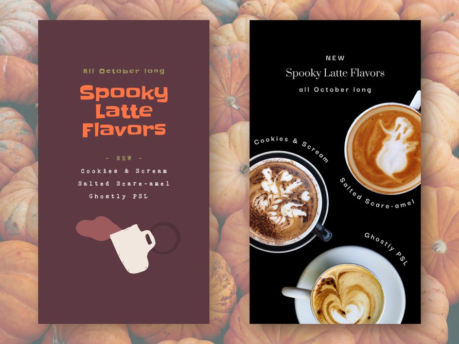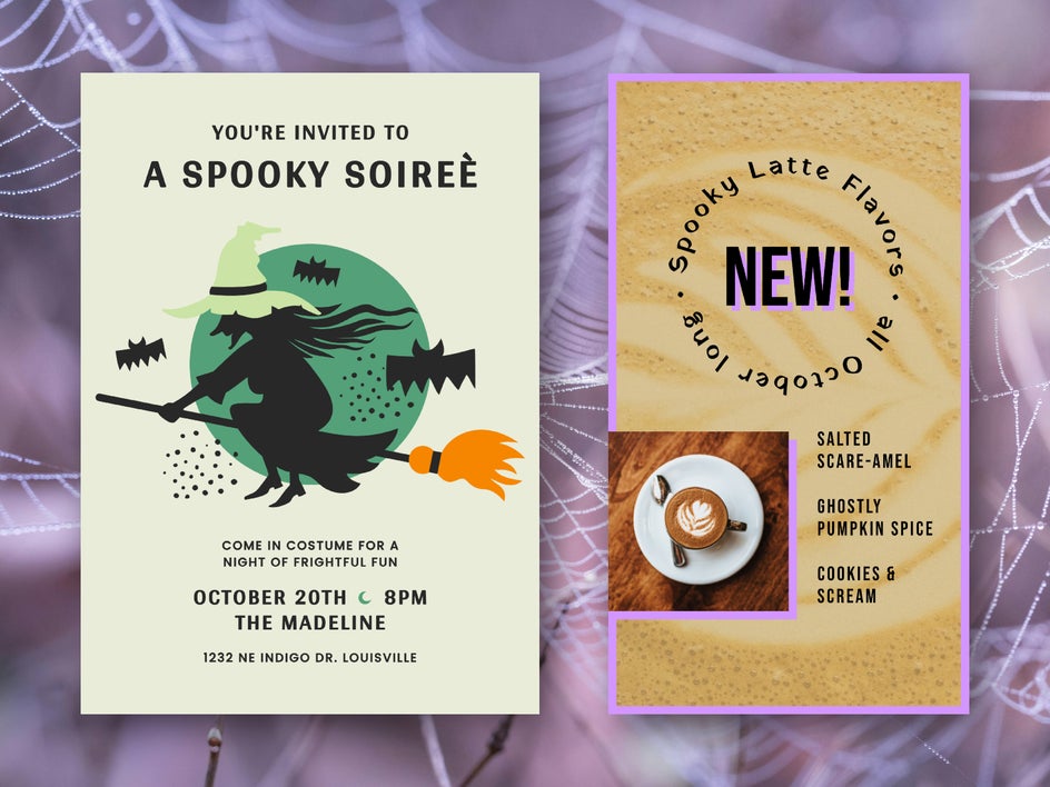 From eerie event graphics and creepy promotional sale posts to festive social media stories and trick-or-treat-worthy menus, BeFunky’s Graphic Designer has a range of templates you can easily customize to suit your business needs. Whether you’re looking to announce a Halloween sale, promote a themed event, or simply add a spooky vibe to your brand's social media presence, these Halloween templates give you the creative freedom to deliver professional, polished designs.