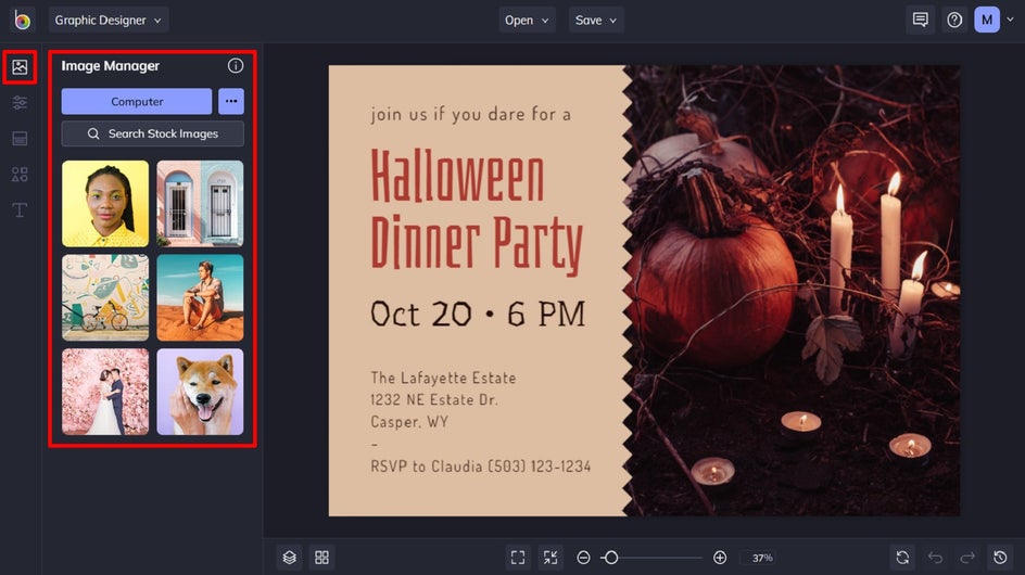 Now that you know you can easily customize any template within BeFunky to suit your Halloween needs, you might be wondering exactly how you can do that. Head to the Graphic Designer, then follow the steps below to do exactly that.
