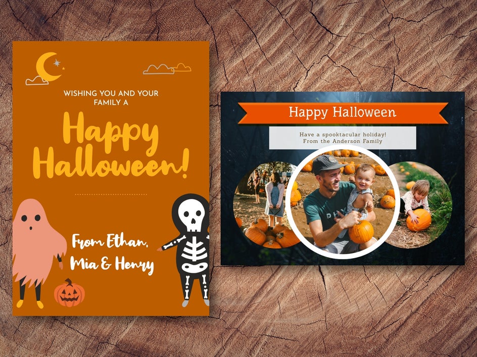 You can also utilize BeFunky’s wide range of Halloween templates to create your very own Halloween cards for friends and family. You can simply switch out the content of an existing Thanksgiving Card template to give it a Halloween vibe, or use one of the ready-made Halloween party invites and tweak it to become a Halloween-themed card instead.