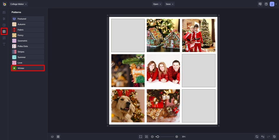 Open the Collage Maker and pick a layout sized like a holiday card. Choose one that matches how many photos you want to feature – whether it’s a single portrait or a mix of snapshots from throughout the year.