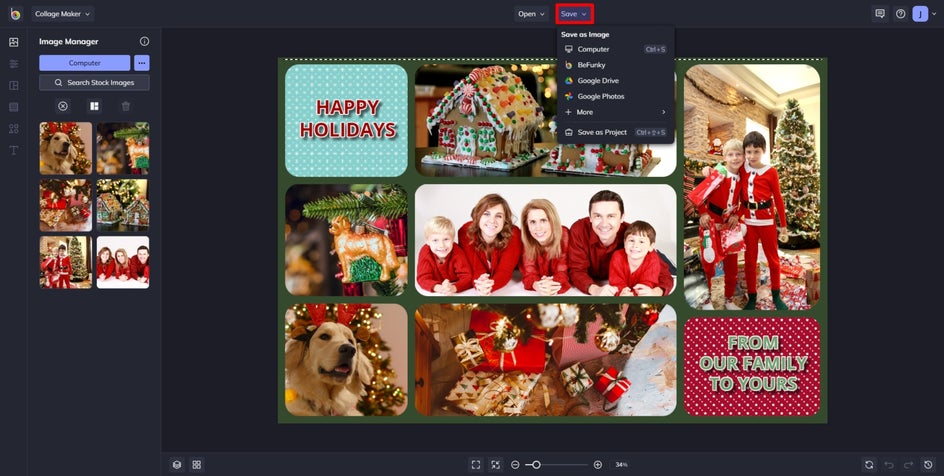 BeFunky’s Collage Maker and Graphic Designer make the process simple, creative, and fun. Start with a collage layout, add your favorite photos, choose colors and patterns that fit your style, and finish with festive graphics or a heartfelt message for a card that feels personal and unique.