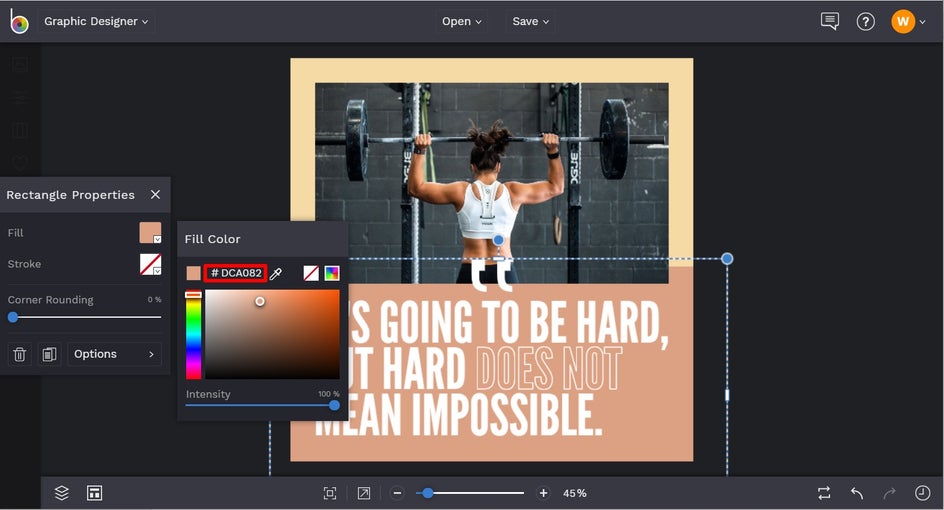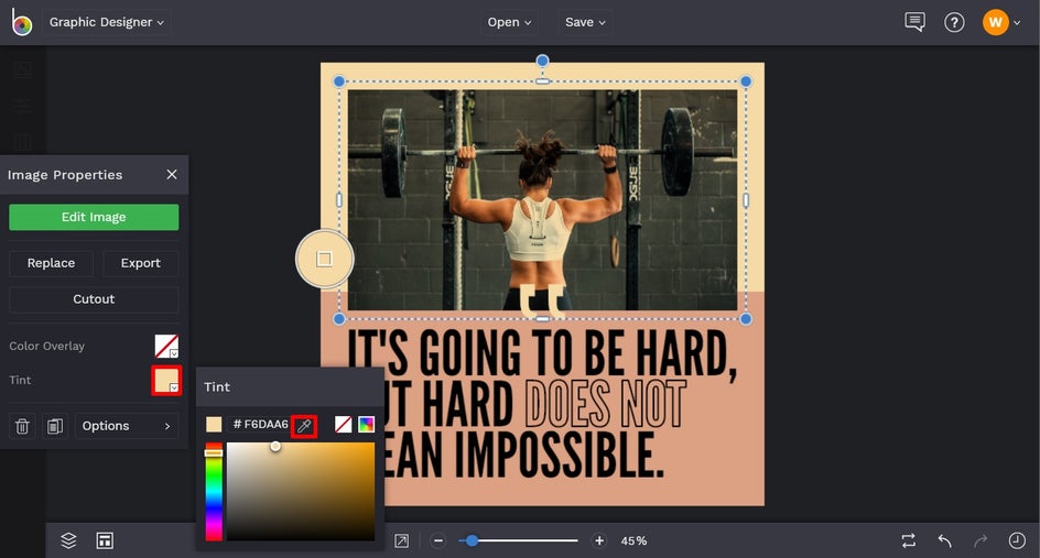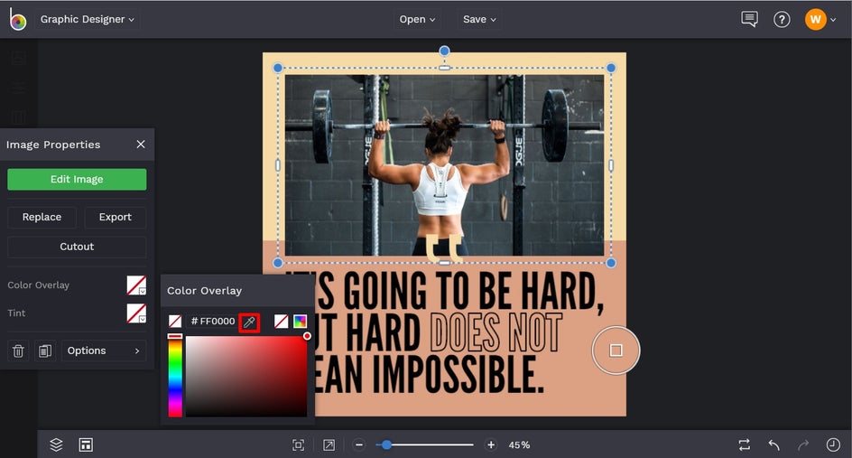 BeFunky’s Graphic Designer is programmed to use HEX Color Codes, which means whether you are creating assets for a brand that needs you to use their HEX codes, or you are simply wanting to create cohesion in your design by matching your project colors to a photo you are using, BeFunky’s got you covered in the HEX department.
