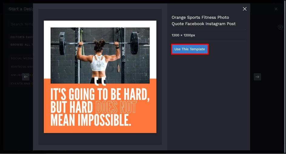 Want to learn how to use HEX Color Codes when editing a template in BeFunky’s Graphic Designer? Get started by searching for a template in the Templates tab and selecting the one you want to work with.