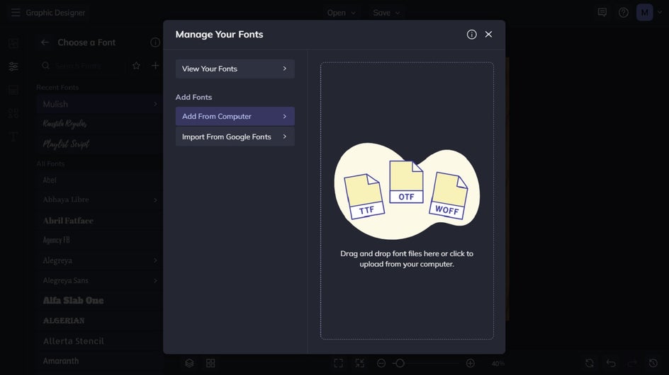 BeFunky’s Text Editor is home to a long list of free fonts, so you’ll never be short on ideas when creating your festive projects. If you want to add even more variety to your designs, however, then BeFunky also lets you easily manage and add fonts from your computer and Google Fonts. This means no font is off-limits, and any free font downloads you’ve added to your own files won’t have to go to waste.