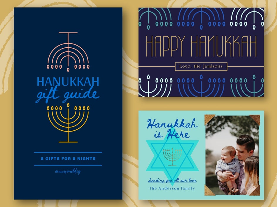 When you think of Hanukkah, there’s no doubt that one of the holiday’s most iconic objects will come to mind: the Hanukkah menorah. In order to create Hanukkah-themed graphic designs that pay homage to this candelabrum, opt for a font that’s reminiscent of its unique shape, like the Sans Serif fonts Wire One and Syncopate.