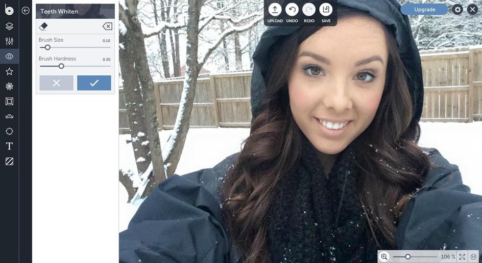 You can definitely expect to take more photos than normal when the holidays come around. With that being said, it can be terribly annoying to find out that your teeth aren't their brightest after you've already snapped your shot (damn you, red wine). Thankfully, the Teeth Whiten tool has got the quick fix you're looking for. Simply adjust the size of your brush and hardness to bring your pearly whites back to life!