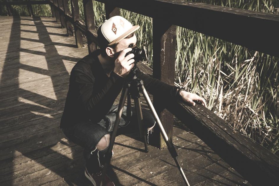 You'll need some key pieces of equipment if you plan on capturing the photo shoot yourself, rather than hiring a professional photographer. One basic, yet helpful piece of equipment you should consider is a tripod. That way, you'll be able to stabilize your camera or smartphone and establish your composition before you begin shooting.