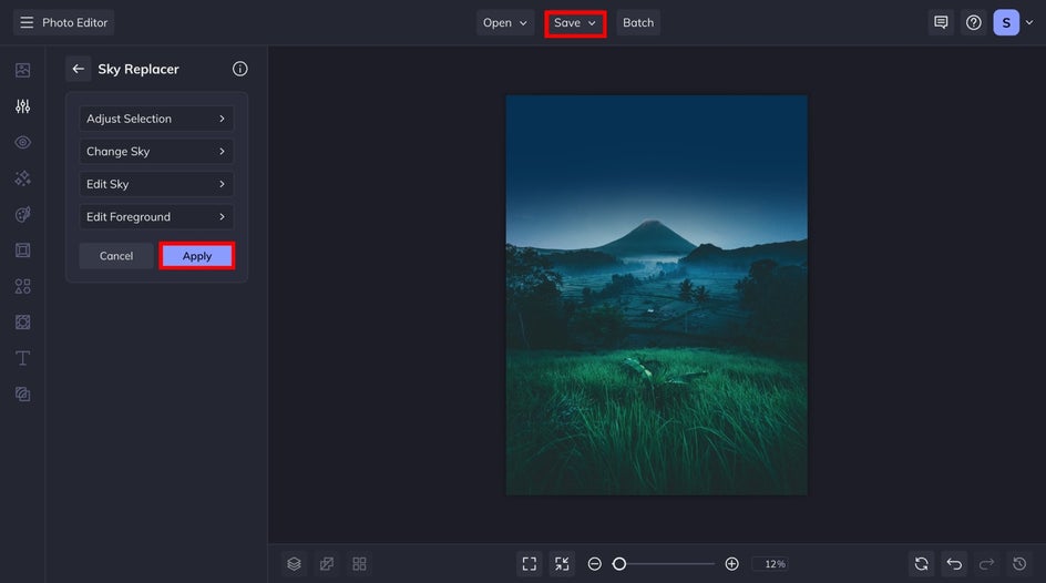 Once you’re done, head back to the main menu of the Sky Replacer and click Apply. Then, choose your ideal save location for easy printing and sharing. And that’s it! It’s really that easy to completely change the sky of your image. It only takes a few seconds.