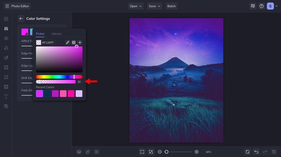 Adding a tint to your sky follows almost all of the same steps that we outlined above – with one key difference. The Opacity slider! After choosing a color, bring that slider down until you get the perfect, tinted skyline. Then, utilize the Color Settings tab to either make your foreground stand out or blend it in.