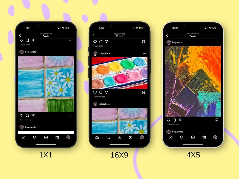 - Vertical image: 1080 x 1350 pixels, or a 4X5 aspect ratio.
