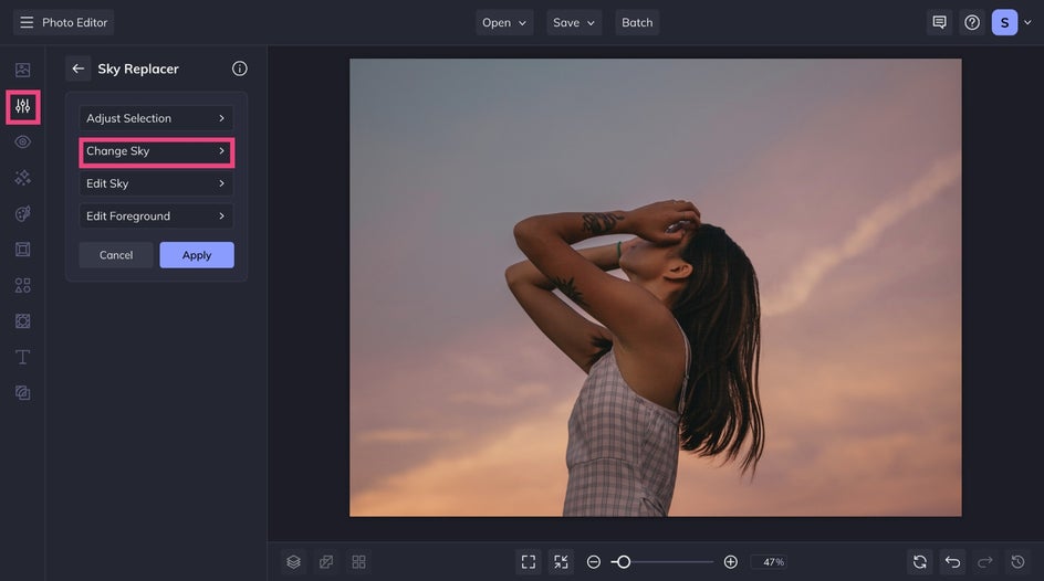 Sky replacement is perfect for refining lifestyle, portrait, or editorial photos with minimal editing. Here’s how to do it: