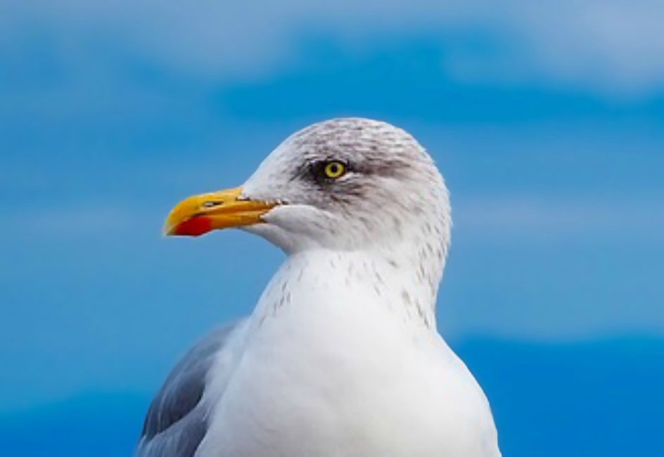 This photo is grainy and full of pixel variation, and the noise is especially noticeable when you zoom in. Where there should be smooth gradients, there are obvious layers of color. Slide to the After photo to see how Denoise reduces noise and smooths out rough edges.