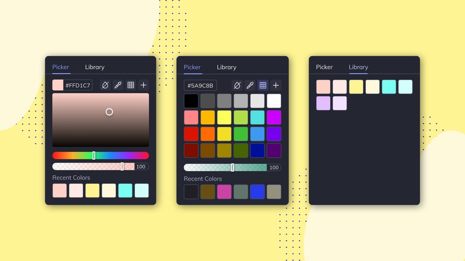 We’re happy to introduce yet another new feature to make your creative process easier – Color Management. Now, right in the Color Picker, you can easily find and save your favorite colors and quickly access your most recently used colors! Let’s dive into the specifics of what makes these new Color Picker features so great: