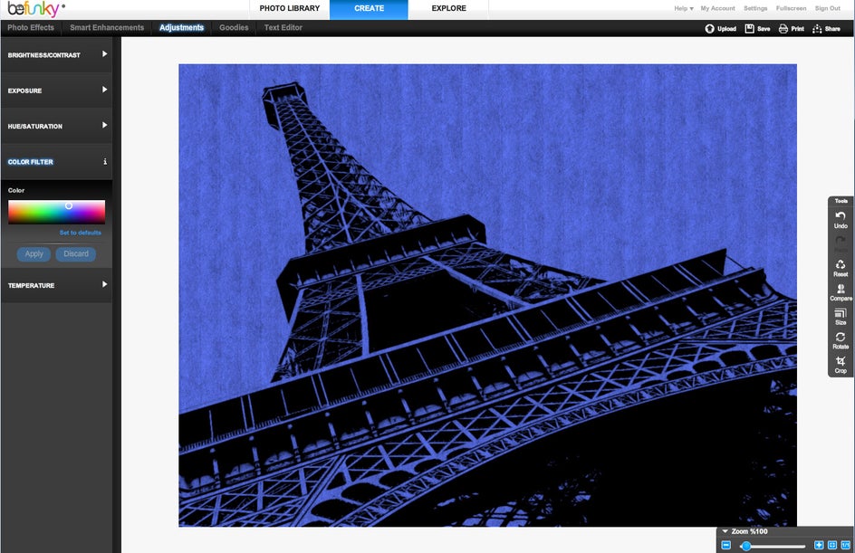 You can even have it printed on a t-shirt, key-chain or other keepsake item. The above example would look great on your wall when printed on a big canvas. Check the Print options at the upper right menu after creating your artwork at BeFunky. Just one warning: Everyone will want you to create an ink photo effect for them.