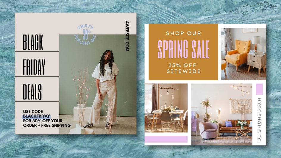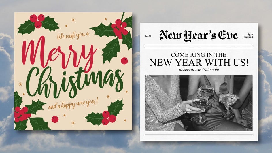 From Diwali to New Year’s Eve to Mother’s Day, holiday templates are a perfect way to stay relevant and festive. These designs come with celebratory graphics and seasonal colors, making them ideal for brands that want to show personality and join the social conversation. Whether you’re wishing followers a Happy Halloween or launching a Valentine’s Day promotion, just replace the placeholder images with your own and you’re ready to post. (You can also choose from BeFunky’s enormous library of free stock images.) Don’t forget to check out holiday Instagram story templates, too!