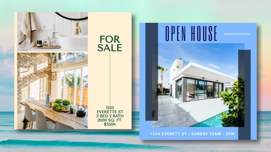 For agents, brokers, and property managers, BeFunky’s real estate templates are designed to make listings shine. From “Just Listed” to “Open House” to “Sold,” each template is crafted to spotlight beautiful home photography and essential details like price, location, and square footage. Easily update the address and swap in high-res photos to achieve a professional post in minutes. Pair them with matching Instagram story templates for a cohesive look across your entire social media account.