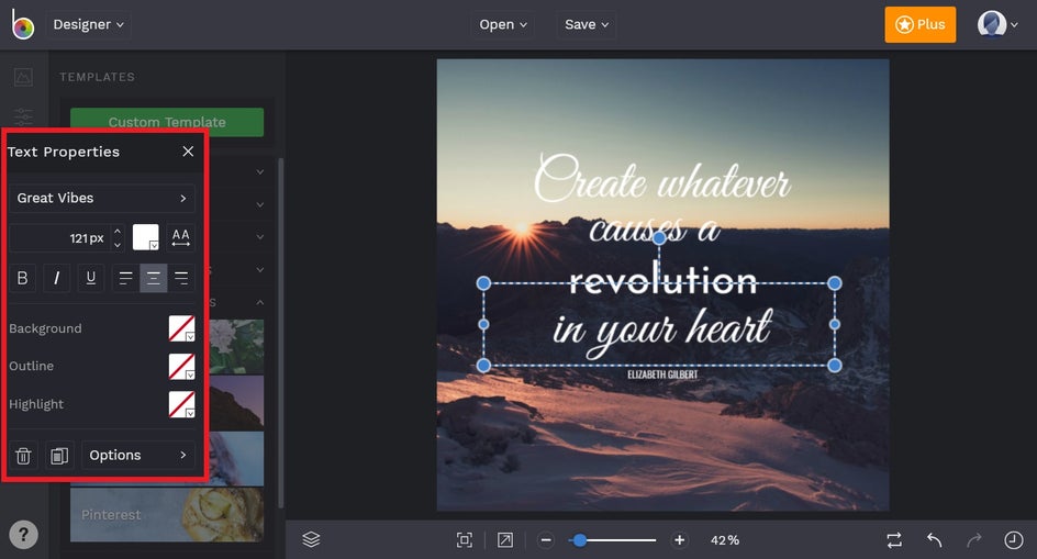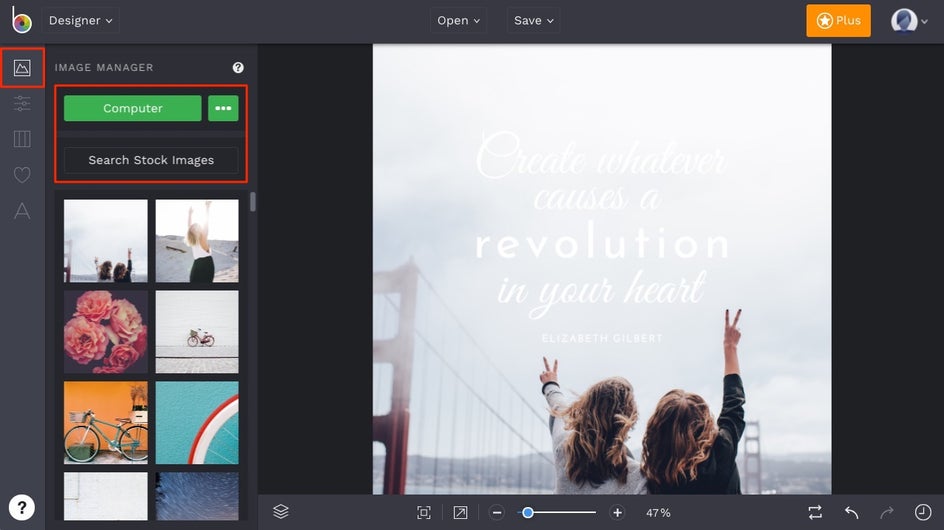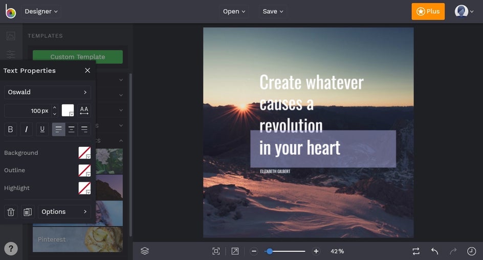 If you are looking for a quote to start with, check out Step 1 in our article about How to Make a Motivational Picture Quote. Once you have your quote chosen, it is time to create your Instagram motivational quote by heading to BeFunky’s Graphic Designer.