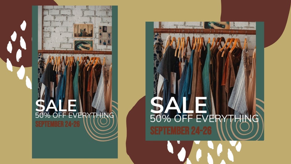 Include any pertinent information someone might need to know in your custom Reel design. Your custom Reel cover will act as an ad of sorts in your Instagram Feed. As an example, if you’re having a sale, include the dates and any promotions. Also, keep in mind the Safe Area mentioned above in tip number 1. To comply with that standard, we move the text down closer to the center of the image.
