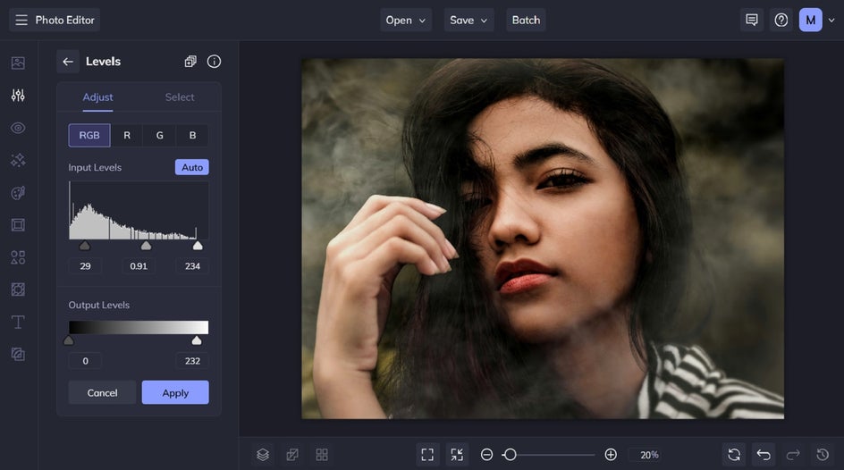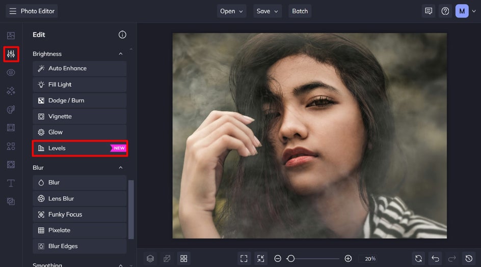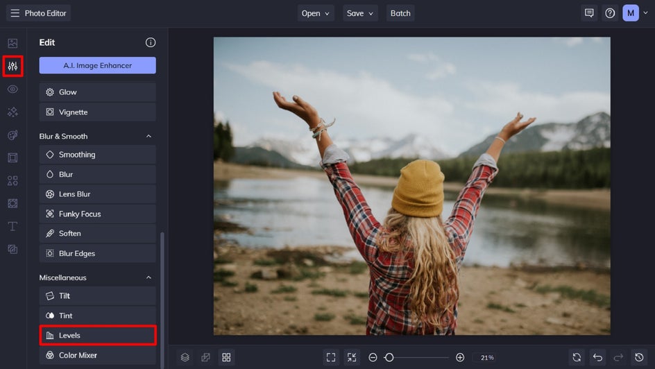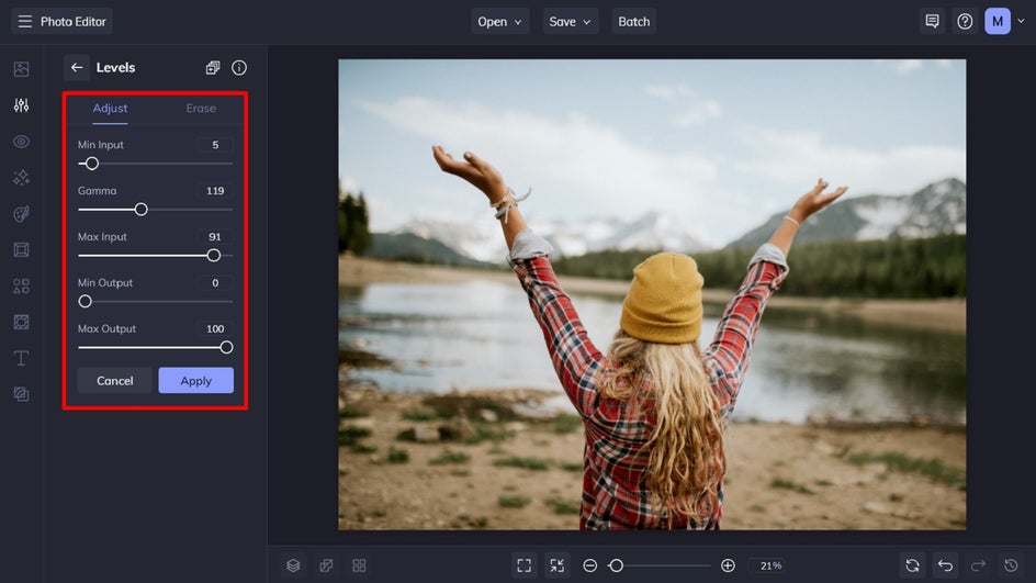 To try out the Levels tool for yourself, head to the Photo Editor and open a photo of your choice.