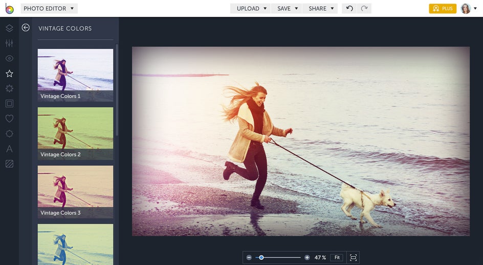 To access our wide range of vintage-inspired photo effects, click on Effects in the main menu on the left. There are plenty of categories to choose from which will boost the vintage aesthetic of your photo. Analog Tones, Chromatic, Instant, Old Photo, and Viewfinder are just some of our favorites!