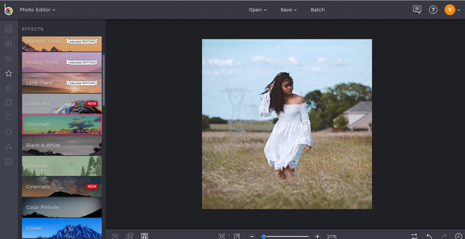 Try applying a black and white filter to your headshot for a more dramatic appeal. To do this, navigate to Effects in the main menu on the left. Then, click on B&W Tones or Black & White to select a black and white filter from these categories.