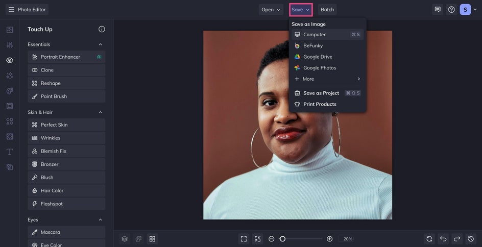 Want to polish your portrait just a bit more? BeFunky’s Touch Up tools include a variety of digital makeup effects that help you look your best while keeping things natural.