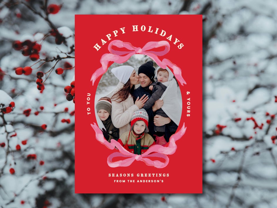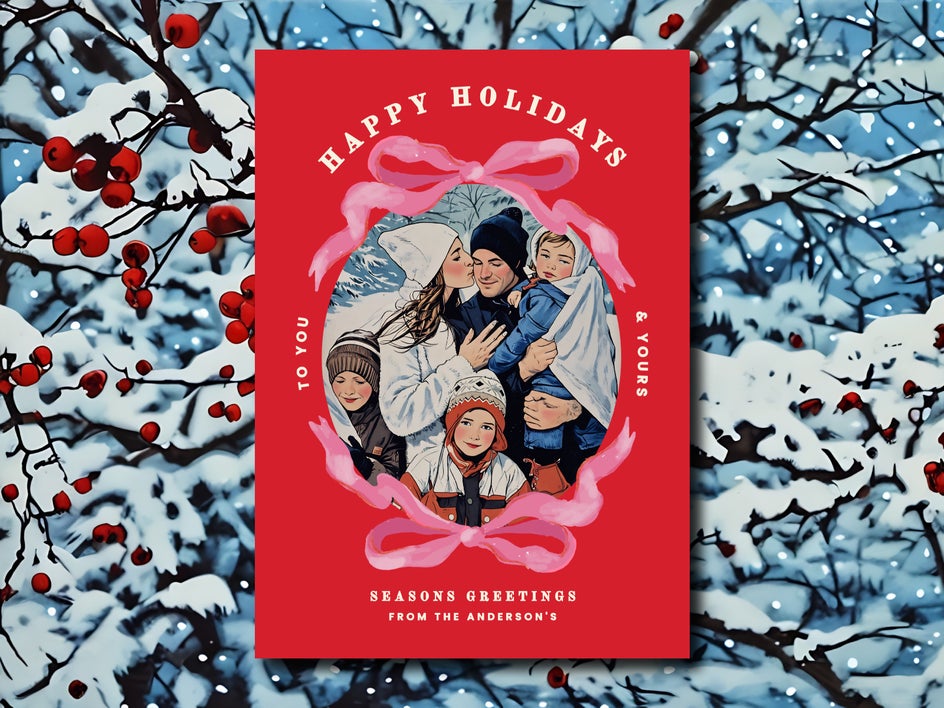 Sending out similar holiday greeting cards year after year can get dull. Change things up by using an Artsy Effect for your next holiday card. With dozens of styles and mediums to choose from, including Crayon, Oil Painting, Graphic Novel, and more, you’re sure to find something that catches your friends’ and family’s eye! Here we’ve used Vintage Comic GFX for a mid-century Christmas card look.