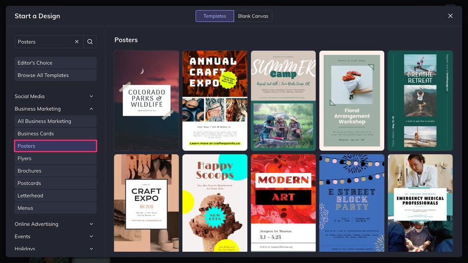 First, open up the Poster Maker and select a template to work from. These poster templates have been professionally designed so that you don’t need to worry about coming up with an eye-catching composition on your own.To make the most of the Photo Editor, make sure to choose one that showcases 1-3 images.