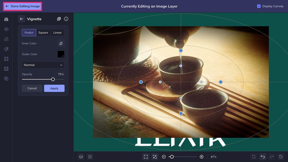 Click any image and select Edit Image to be brought to the in-platform Photo Editor. Here you’ll find hundreds of professional editing tools that are all intuitive to use.