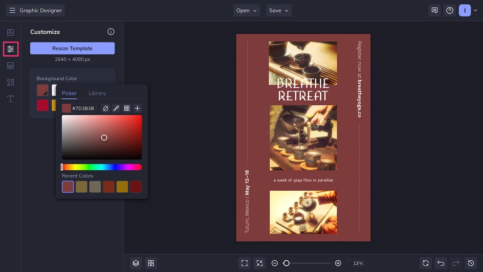 Once you’re happy with your photo enhancements, it’s time to work on the rest of your poster design. You can change the background color of your canvas in the Customize tab.