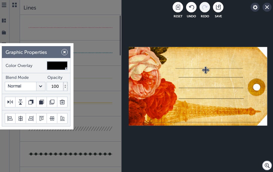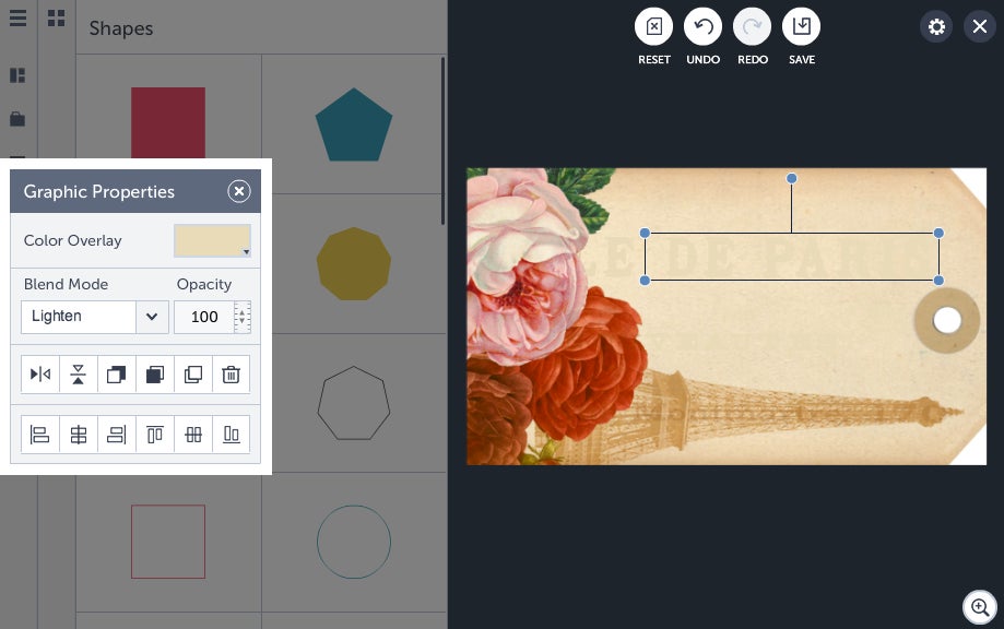 Once a small blue checkmark appears on the image, simply close the Graphics Library. Your chosen tag shape will be in the Your Graphics section. Drag and drop the graphic onto your canvas, then drag its corners inwards or outwards to make it smaller or larger. You can also reposition it by moving it with your mouse. Ensure that it fills your canvas as much as possible, so it’s the optimal size.