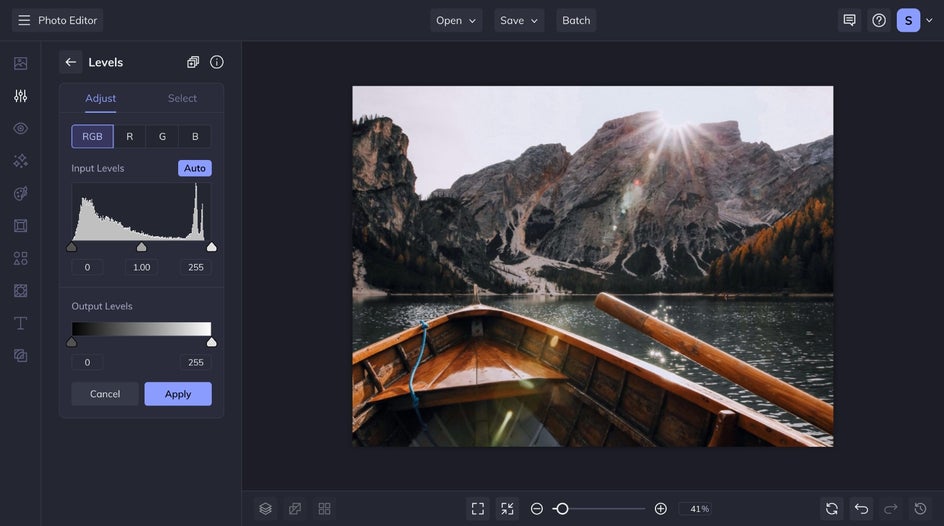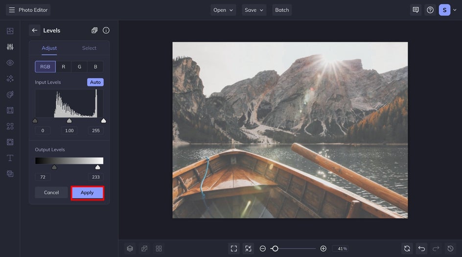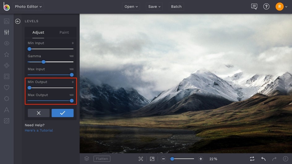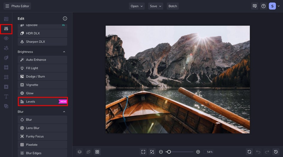 To add a matte photo effect, head to BeFunky’s Photo Editor and upload an image. From the Edit tab in the left-hand menu, scroll to the Brightness category to find the Levels tool.