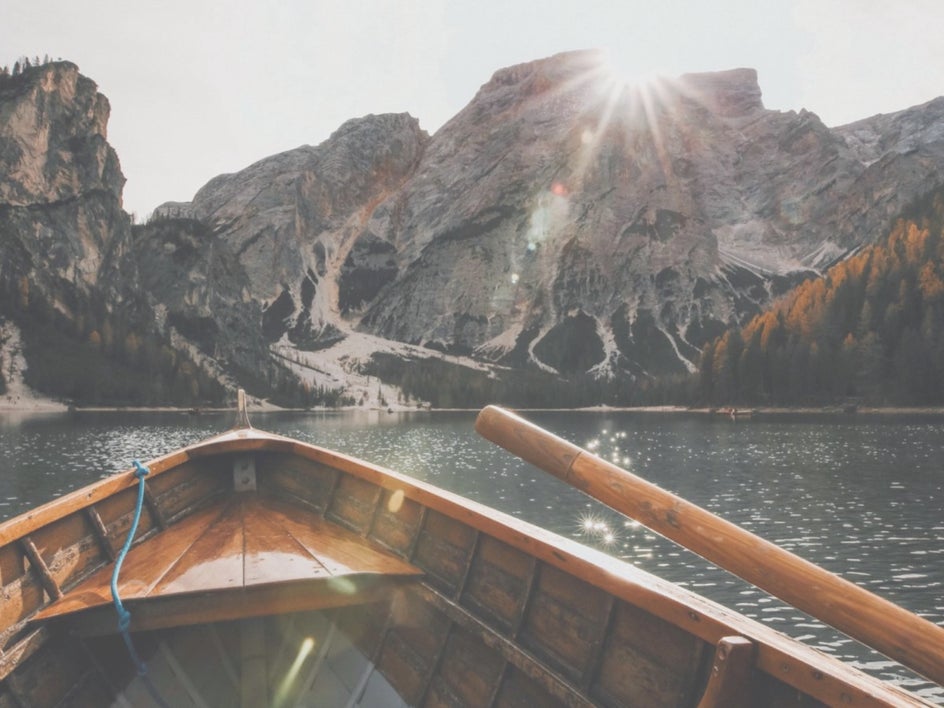 boat in lake with mountains with levels applied