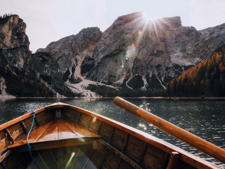 boat in lake with mountains